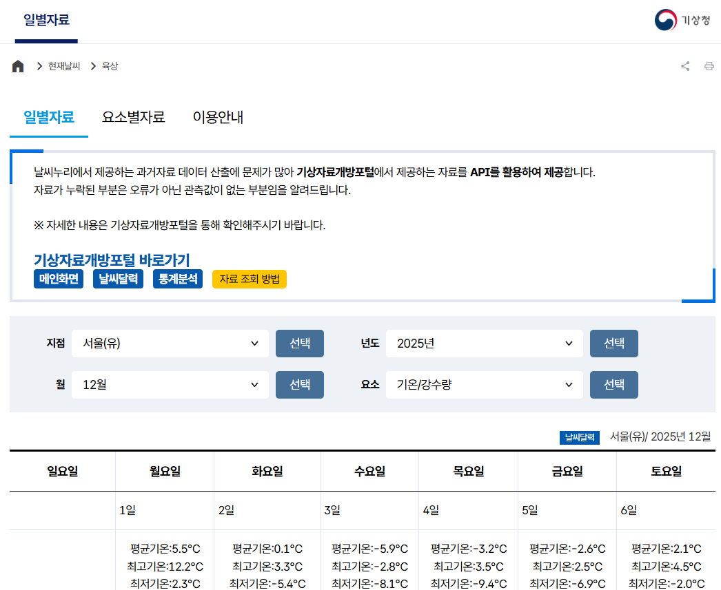 기상자료개방포털을 활용한 심화 조회 방법