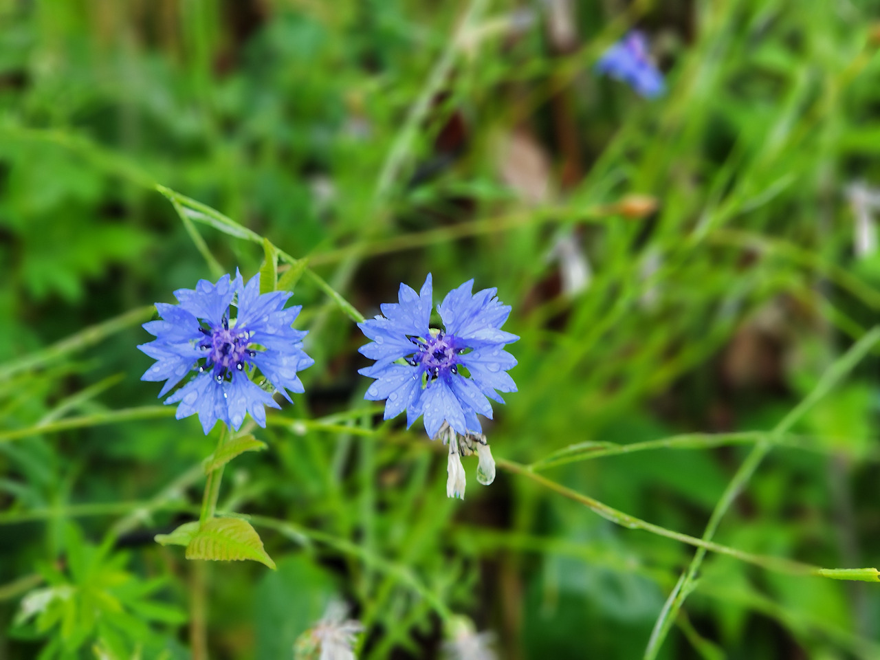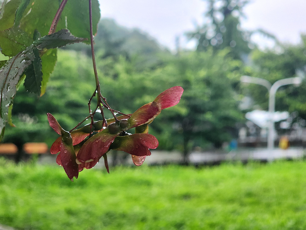 다른 나무가 퉁긴 빗방울에