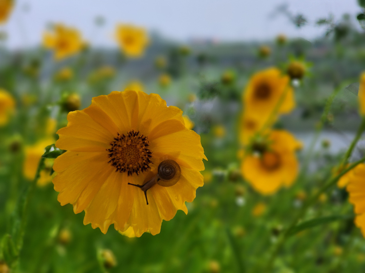 집으로 들어가는 달팽이의 뿔들