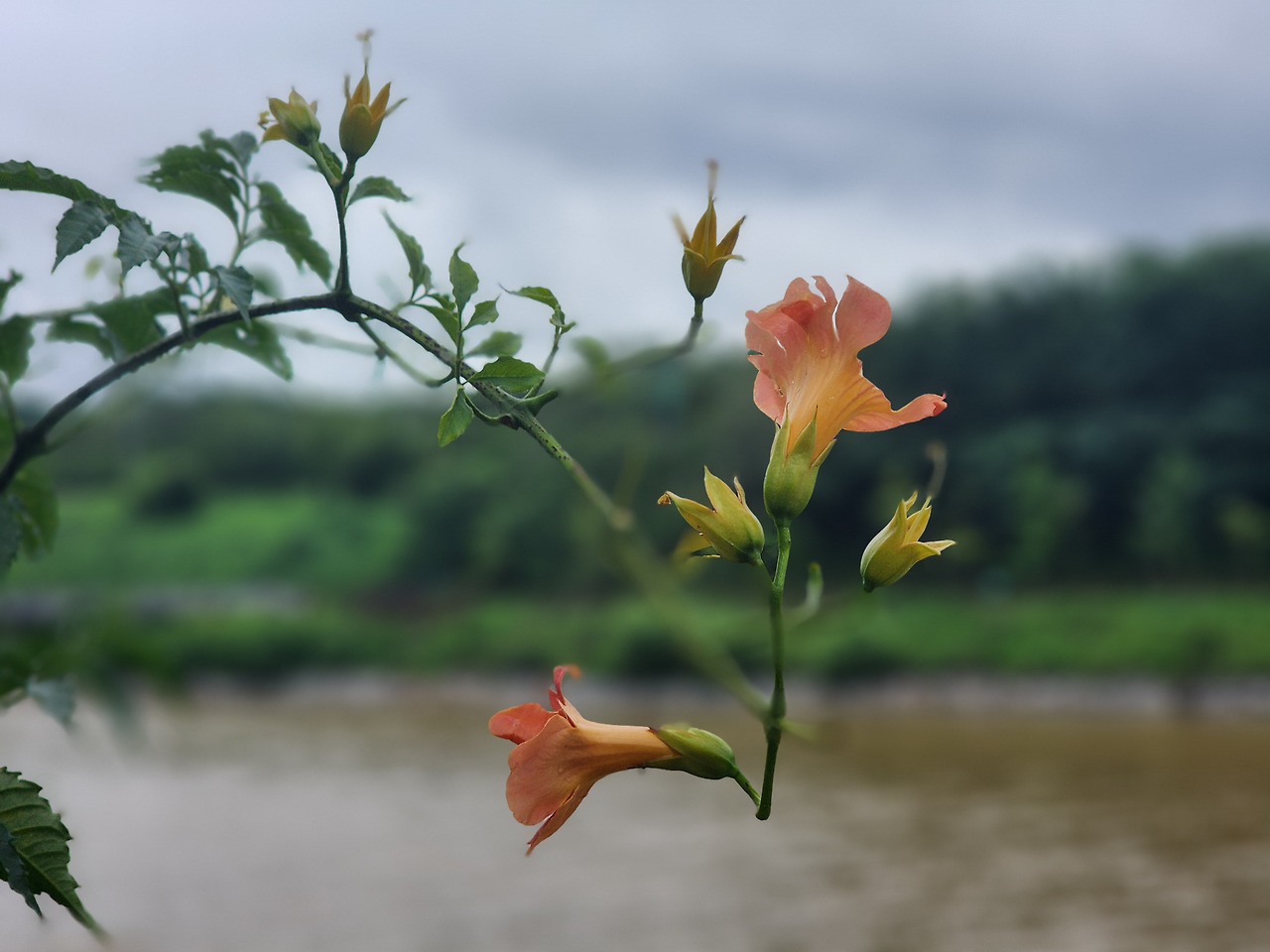 송이송이 핀다.추적추적 내리는 비