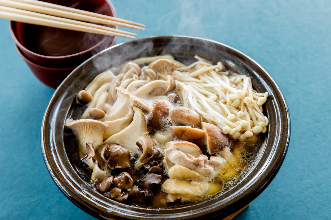 - 멸치육수에 된장을 풀어 끓이다가 버섯과 채소를 넣습니다.