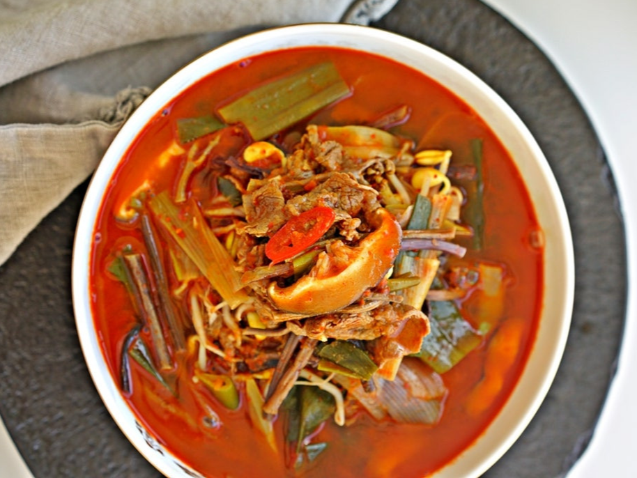 육개장은 소고기와 고사리, 대파, 숙주를 듬뿍 넣고 고춧가루 기름으로 향을 낸 한국의 대표 매운 국물 요리입니다. 육개장 맛있게 끓이는법의 성패는