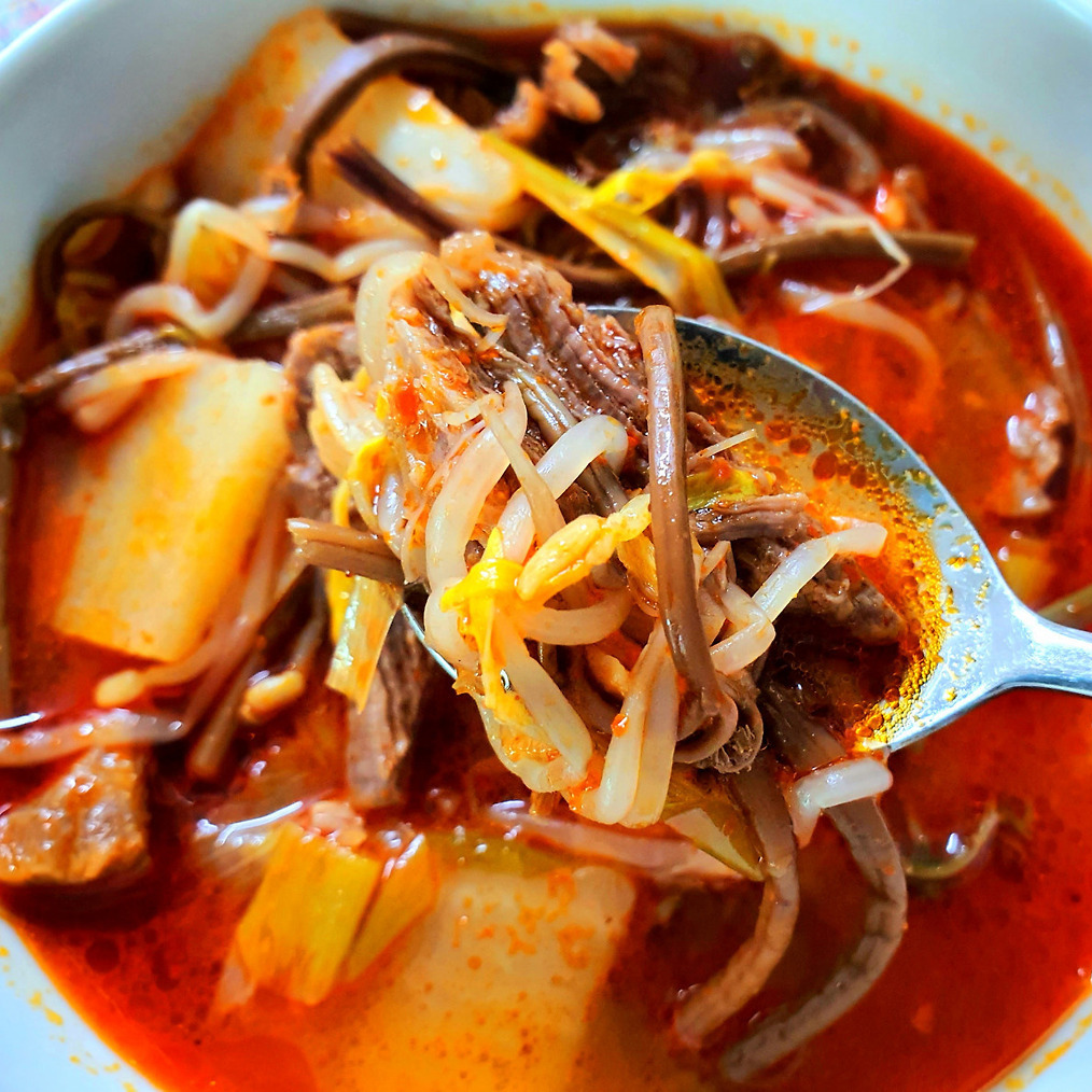 육개장은 소고기와 고사리, 대파, 숙주를 듬뿍 넣고 고춧가루 기름으로 향을 낸 한국의 대표 매운 국물 요리입니다. 육개장 맛있게 끓이는법의 성패는