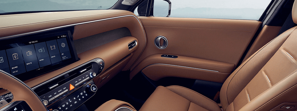 실내는 공간 활용성과 고급감을 동시에 고려한 구성이 핵심입니다. 대형 디스플레이 중심의 수평형 레이아웃을 적용해 시각적 개방감을 극대화했으며, 센터 콘솔과 대시보드 전반에 부드러운 촉감의 마감재를 사용해 장거리 주행 시 피로도를 낮췄습니다.